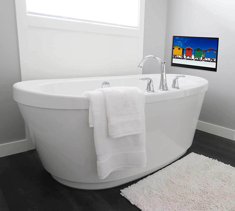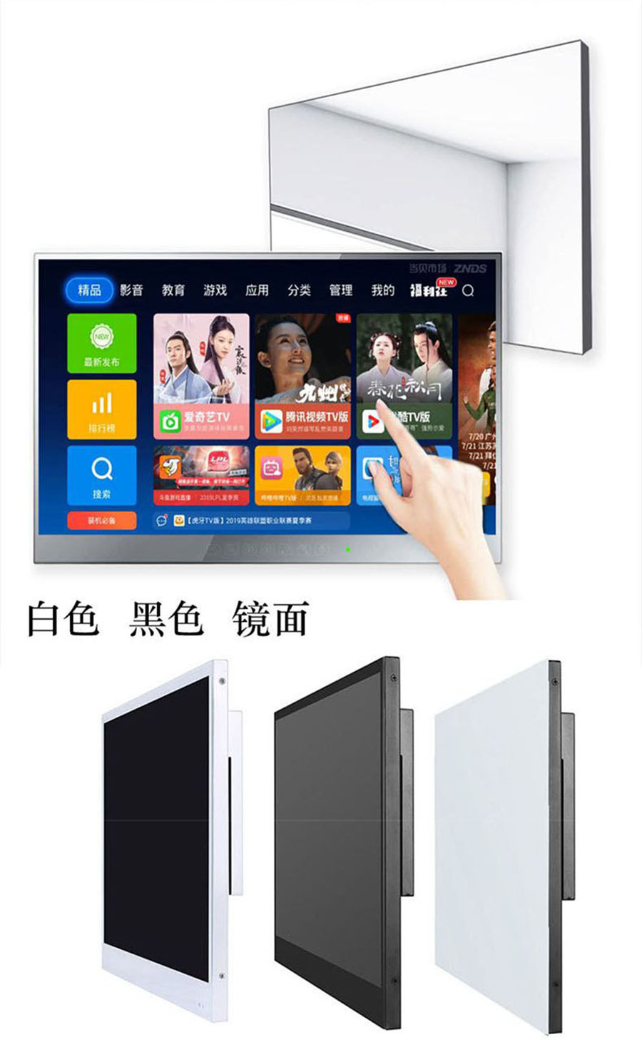 18.5英寸至65英寸多媒体防水网络魔镜:打开时显示节目,在关闭时显示镜子。IP66防水的,豪华安装在浴室、酒店和厨房,内置强大的2个振动扬声器和IP68防水遥控器,内置500以上APP节目,正版谷歌版权,带Android 11.0系统的智能数字系统,可以访问各种内置APP的频道(内置:NETFLIX,YouTube,Prime video,HBOmax,Disney+等上百种多媒体APP.让您生活变得精彩无限。)。无需高空作业!全高清屏幕,16:9屏幕,分辨率:1920x1080,提供高品质和生动的画面。有关更多规格,请参阅以下产品说明。